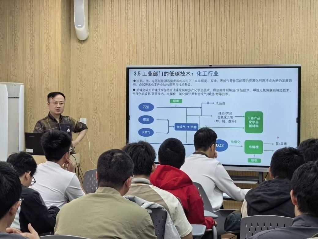 徐朗教授从全球气候变化背景切入,阐释了实现碳中和的重要性与核心方法,结合主持的科研项目“共电解水蒸气/CO₂”介绍了“通过高效电催化技术实现碳循环与氢能制备的协同突破”等问题,展示了该领域的关键技术难点与创新方向。