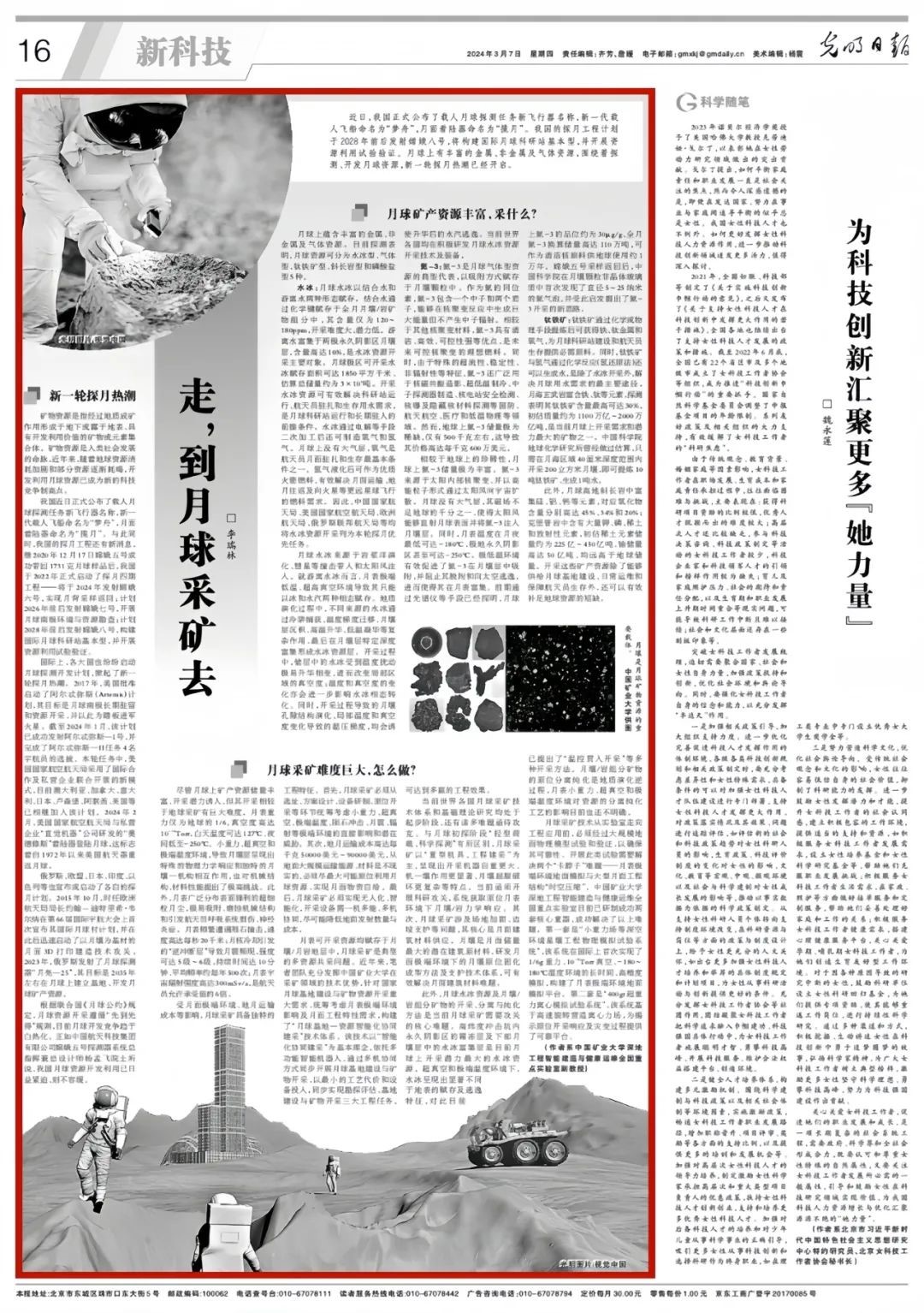 2024年3月7日,《光明日报》刊发了公司院友李瑞林文章《走,到月球采矿去》,报道了公司在月球采矿领域的进展。